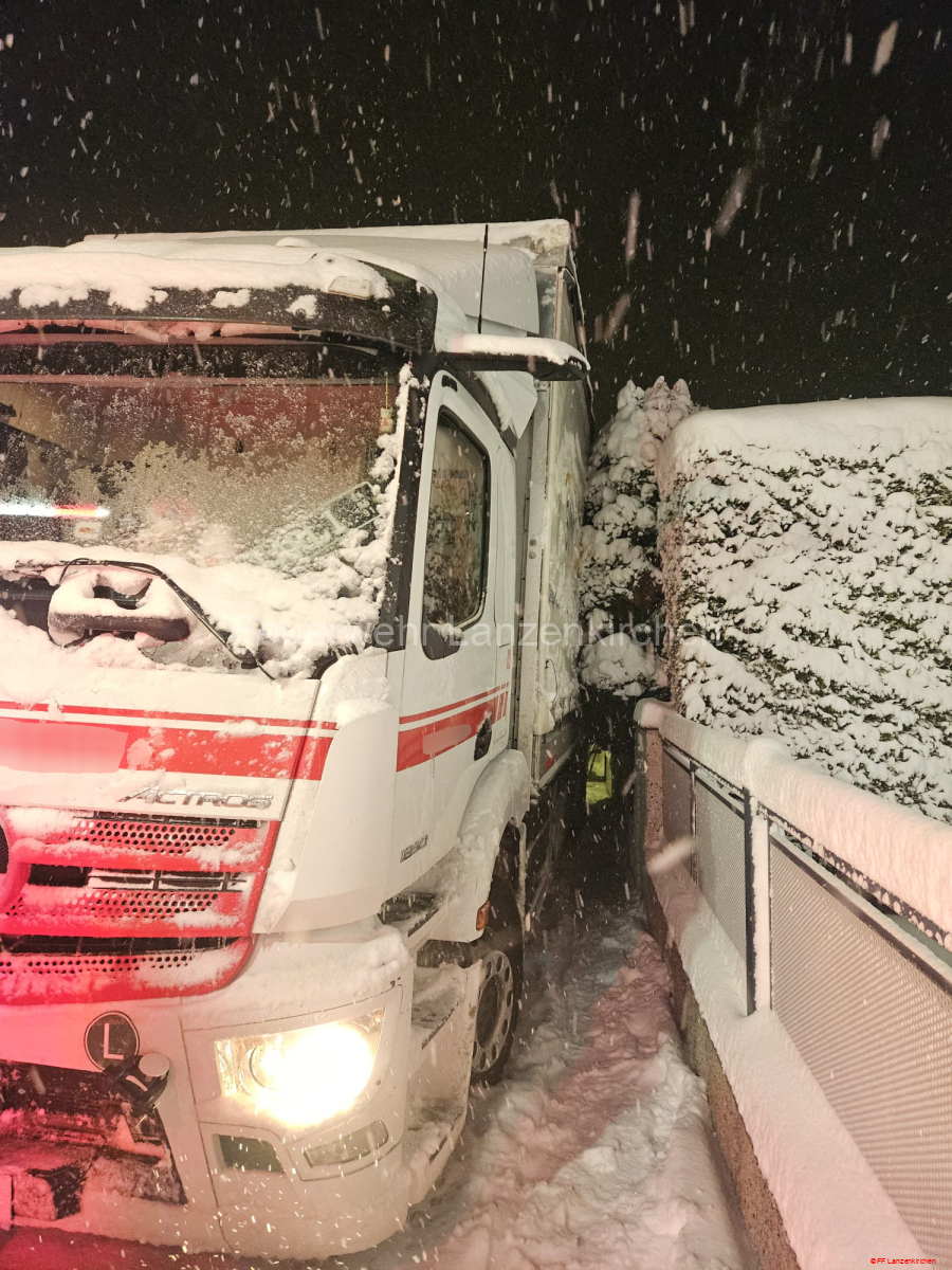 Heute wurden wir zu einer technischen Hilfeleistung alarmiert: Ein LKW drohte gegen einen Zaun zu rutschen. Vor Ort zeigte sich schnell, dass rasches Handeln gefragt war.